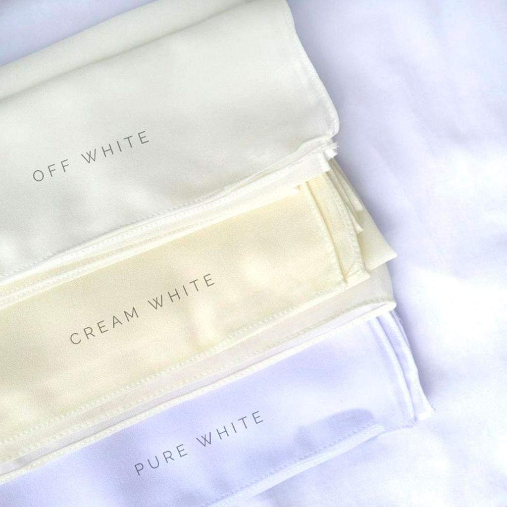 Perbezaan warna cream,off white dan pure white.jhn keliru ye.stok sume dh msuk ye.cpt2 pm trutama bkal pngntin ye. Cuba bagi pendapat dan pandangan pada bakal2 pengantin. Long shawl guna material heavy chiffon yang flowy dan mudah dibentuk. And running out of the belt are prevented. ** warna shawl putih off white & pure white, namun ada sesetengah stock ada sedikit .